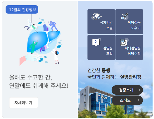 질병관리청 공식 홈페이지, 감염병·건강정보, 정책정보, 연구개발 및 간행물·통계 정보를 제공합니다.